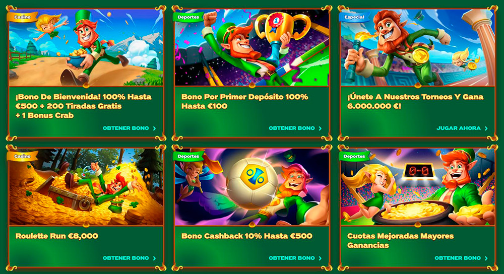 - Bono de bienvenida GreenLuck: Al cumplir con el proceso de registro, podrás conseguir un generoso bono del 100% en transferencias de hasta 500 EUR + 200 giros gratis en tragamonedas seleccionadas.