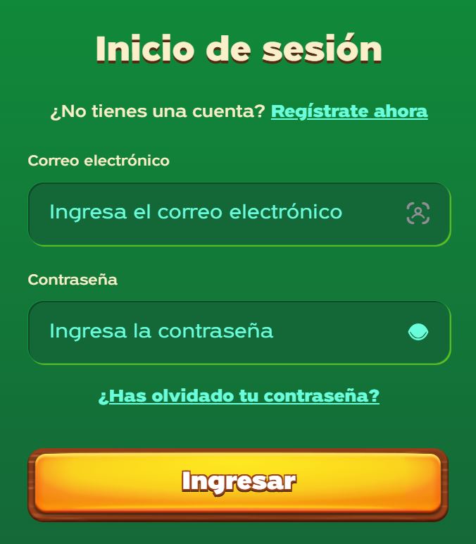 1. Ingresa a la página web: Navega hasta los servidores de GreenLuck y selecciona “ingresar”. La página guarda datos de la caché por lo que no deberás ingresar el correo electrónico o el nombre de usuario.