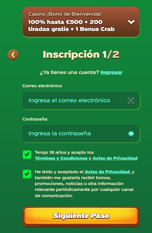 Los usuarios de casino online no conseguirán una página de apuestas que coloque mayores trabas para ser parte de su comunidad de apuestas; GreenLuck casino online no es la excepción. Para ser cliente de esta forma, solo deberás realizar una inversión de pocos minutos, y de 10 EUR en cualquiera de las tarjetas MasterCard, las billeteras electrónicas compatibles, o desde cuentas en criptomonedas. Aquí te muestro una guía con todos los pasos a seguir: